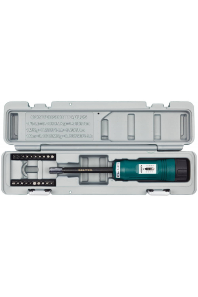 Отвертка динамометрическая KRAFTOOL со шкалой, регулируемая, 1-8 Нм, точность +/-6%, 20 бит, в боксе, (64030)