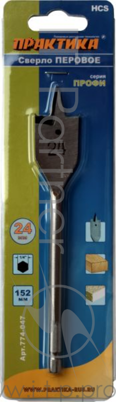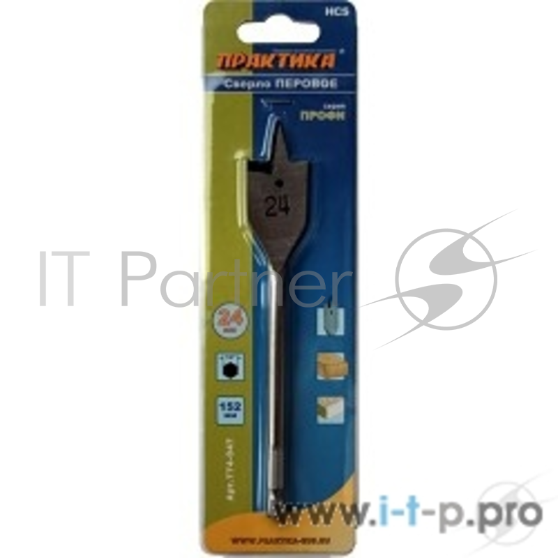 Сверла,коронки,наборы Сверло ПРАКТИКА перовое по дереву 24 х 152 мм в блистере [774-047]