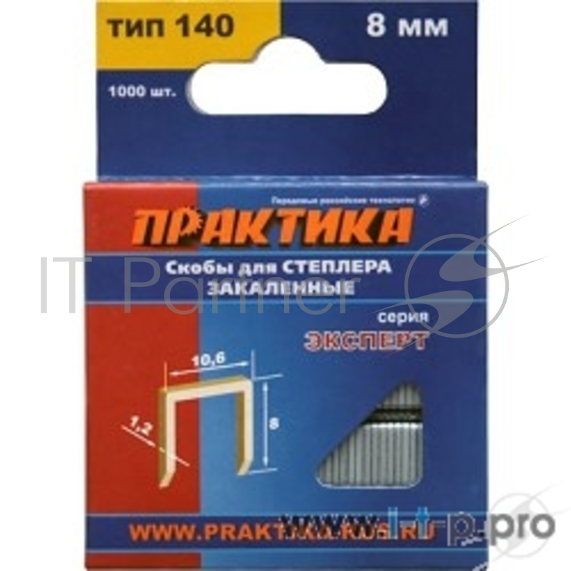 Наборы инструмента Скобы ПРАКТИКА для степлера, 8 мм, Тип 140 (1,2х10,6мм), 1000 шт [775-204]