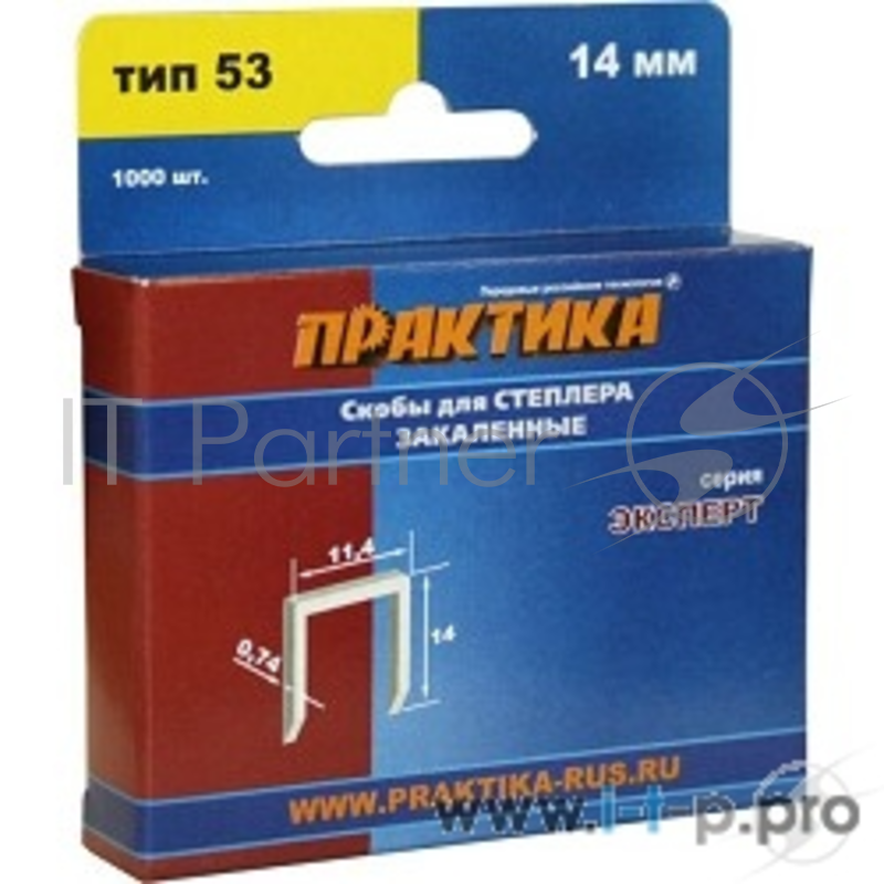 Наборы инструмента Скобы ПРАКТИКА для степлера, 14 мм, Тип 53 (0,7х11,3мм), Серия ЭКСПЕРТ, 1000 шт [775-402]
