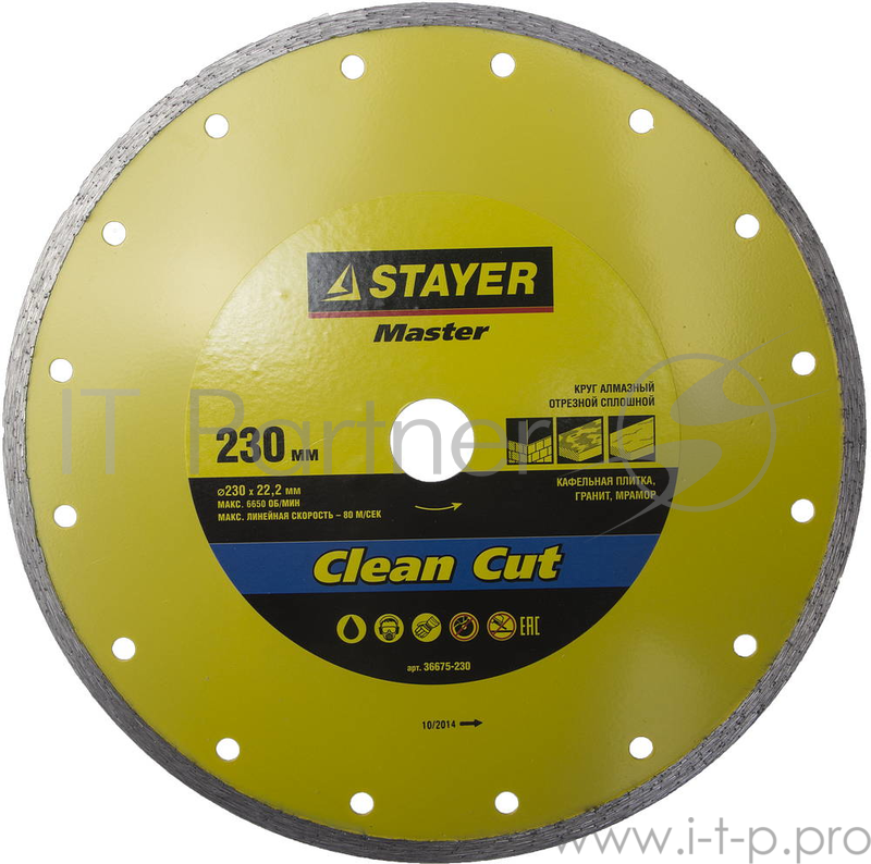 Круг алмазный STAYER MASTER 36675-230 отрезной сплошной влажная резка 22.2х230мм