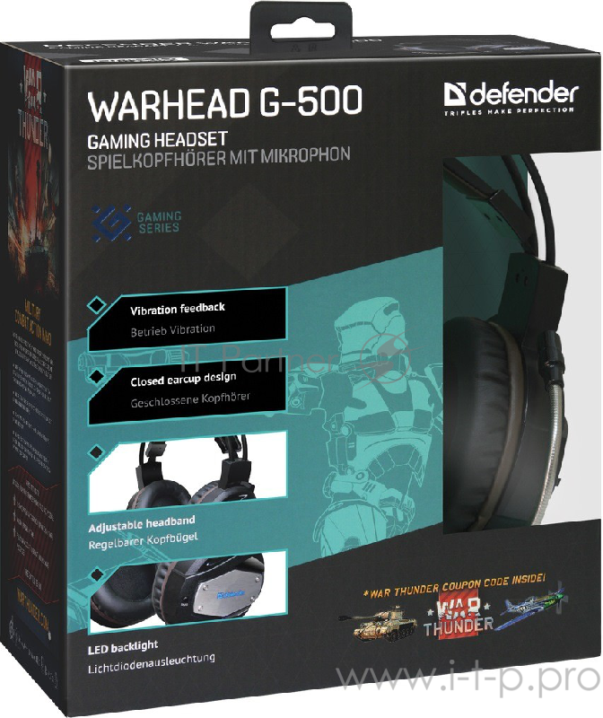 Наушники Defender Warhead G-500 коричневый+черный, кабель2,5 м 64150