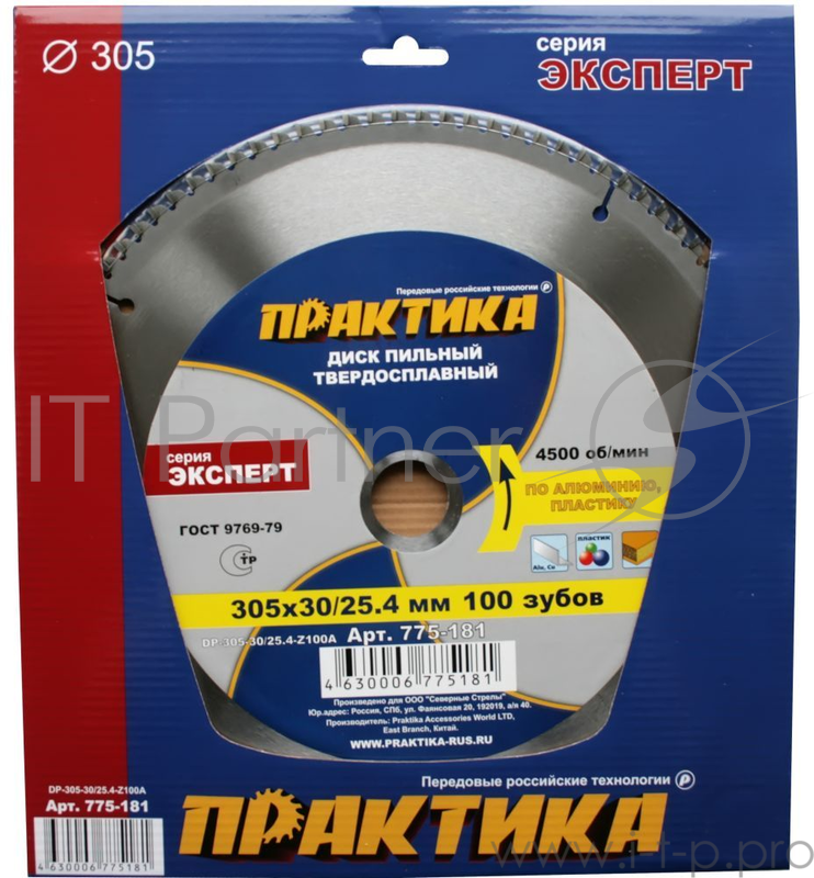 ПРАКТИКА Диск тв/сп 305x30, Z=100 T=3,0 mm алюминий 775-181