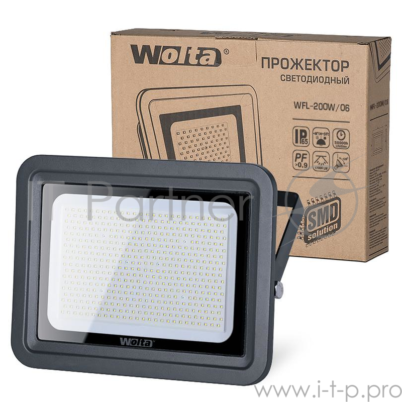 Светодиодный прожектор WOLTA WFL-200W/06 5500K, 200 W SMD, IP 65,цвет серый, слим