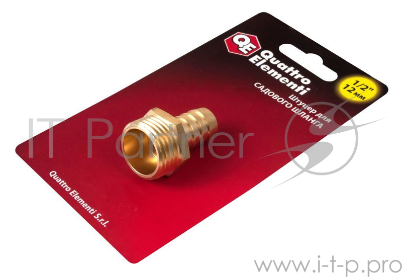 Штуцер для шланга QE 771-824 резьба 1/2'', на шланг 12мм, латунь