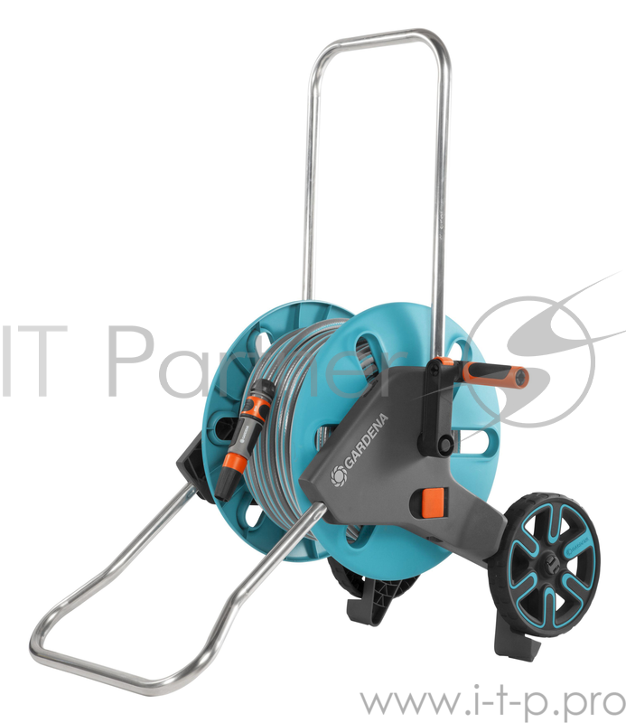Описание: Тележка для шланга AquaRoll M GARDENA облегчает полив. Она снабжена шлангом длиной 20 м и диаметром 13 мм (1/2), соединительными элементами от Базовой системы полива, наконечником для полива Classic и резьбовыми штуцерами с резьбой различного размера для подсоединения к водопроводному крану.