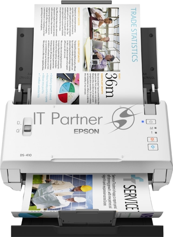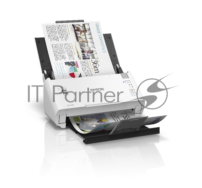 Сканер Epson WorkForce DS-410 (B11B249401), CCD для документов, протяжный, A4, 600x600 dpi, 26 стр/мин, USB 2.0, дуплекс, податчик 50 стр. ресурс 3000 стр. в день