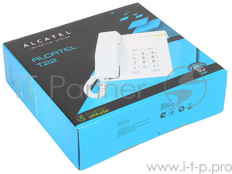 Телефон ALCATEL T22 White Flash, Recall, Wall mt.