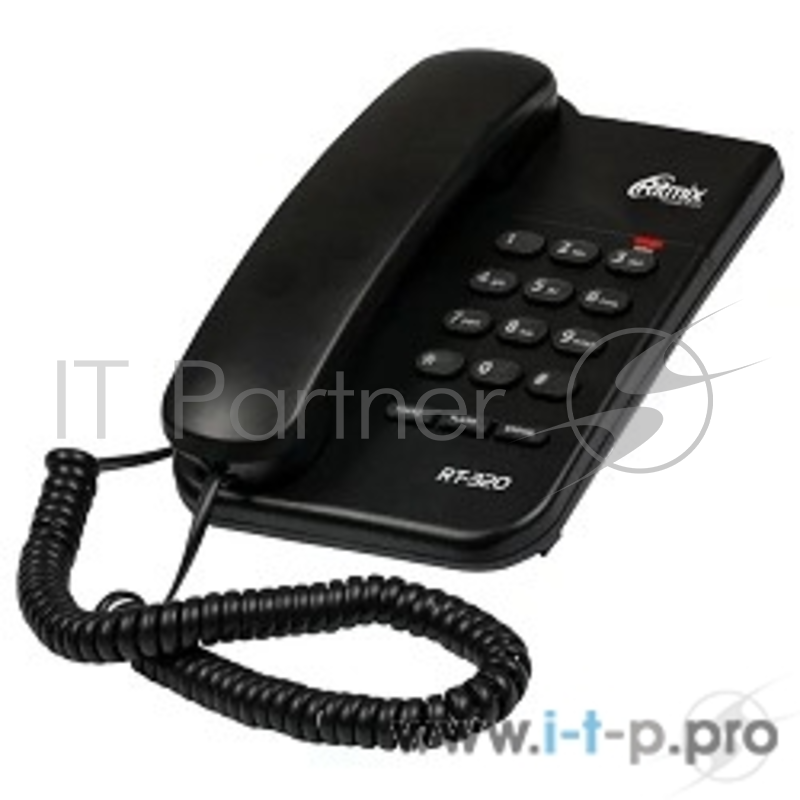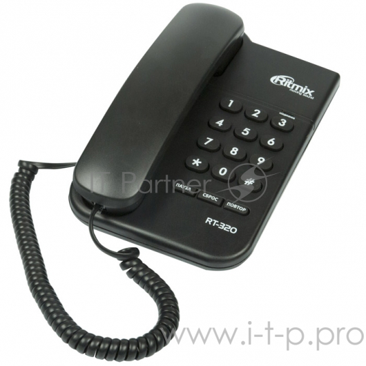 Телефон проводной RITMIX RT-320 black, без дисплея, пауза, сброс, повтор номера, световой индикатор, регулировка громкости звонка (настольн/настен)