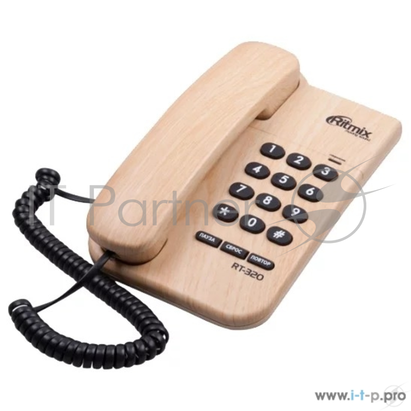 Телефон проводной RITMIX RT-320 light wood, без дисплея, цвет светлое дерево, пауза, сброс, повтор номера, световой индикатор, регулировка громкости