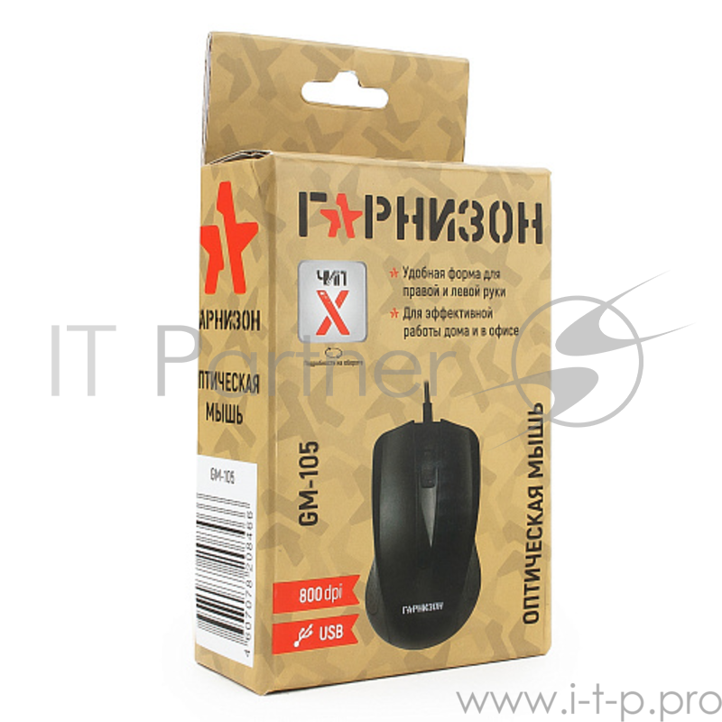 Мышь Гарнизон GM-105, USB, чип- Х, черный, 800 DPI, 2кн.+колесо-кнопка