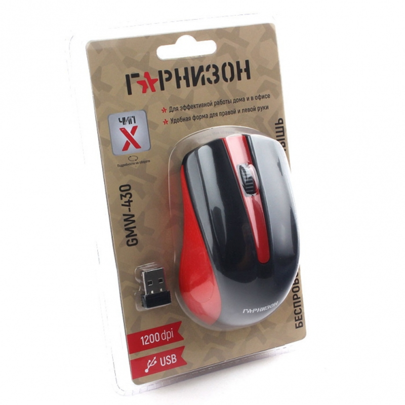 Мышь беспроводная Гарнизон GMW-430R, чип X, красный, 1200 DPI, 2 кн.+ колесо-кнопка, блистер