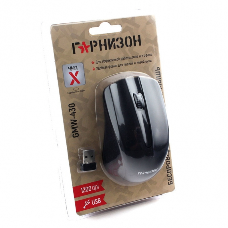 Мышь беспроводная Гарнизон GMW-430, чип X, черный, 1200 DPI, 2 кн.+ колесо-кнопка, блистер
