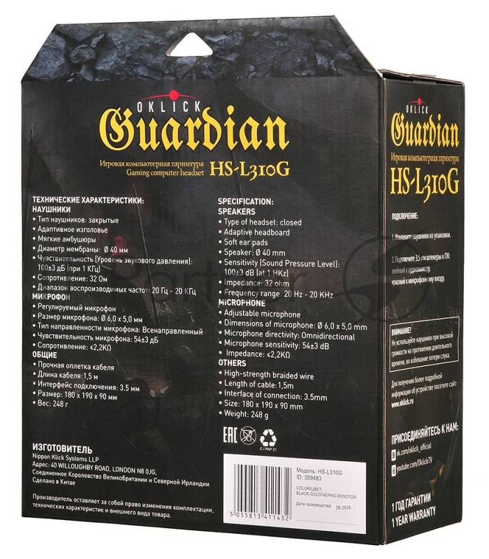 Наушники с микрофоном Oklick Guardian HS-L310G черный 1.5м мониторы оголовье (LPS-1530)