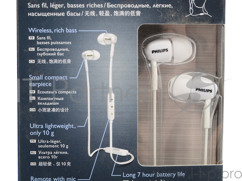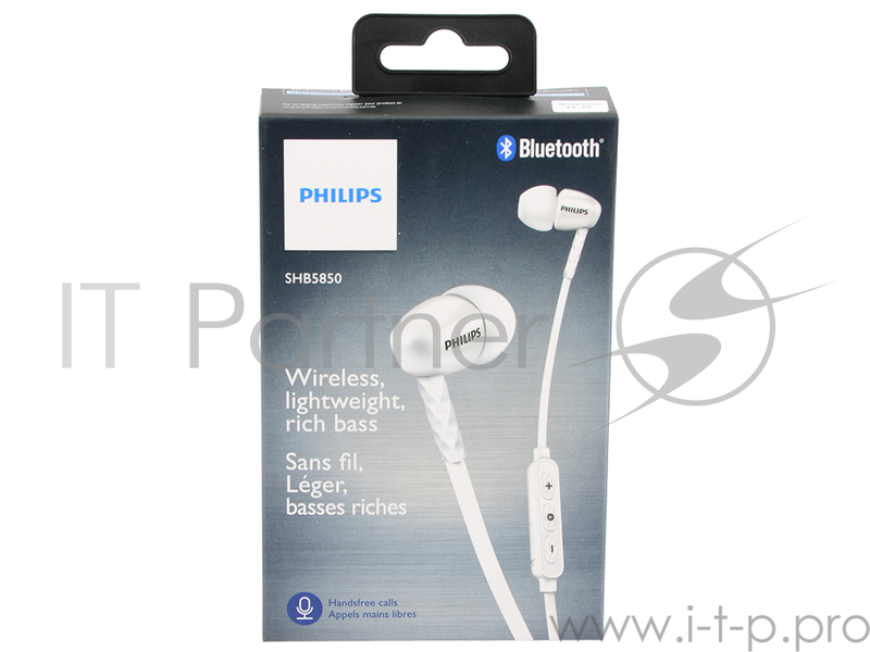 Наушники-гарнитура Philips SHB5850WT/00 (вкладыши)Bluetooth наушники-вкладыши, 8 мм неодимовые излучатели, закрытого типа, диапазон частот Гц: 10-22000, чувствительность дБ: 107, Сопротивление Ом: 16, улучшение звука: эхо-контроль, шумоподавление вре