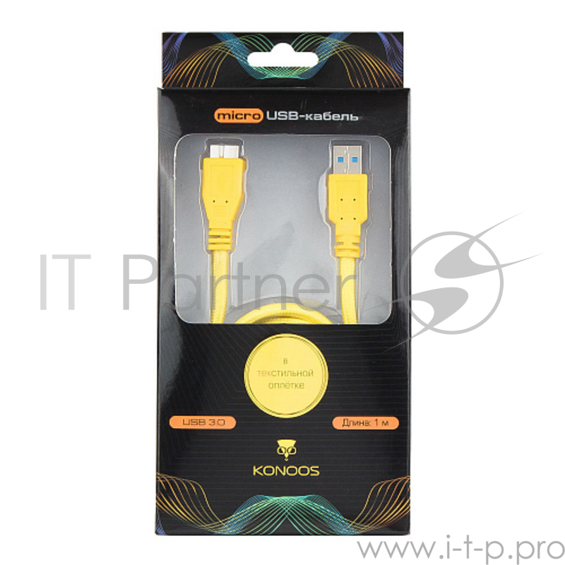 Кабель Konoos USB 3.0 KC-mUSB3ny, AM/microBM 9P, 1м, желтый, нейлоновая оплетка, коробка
