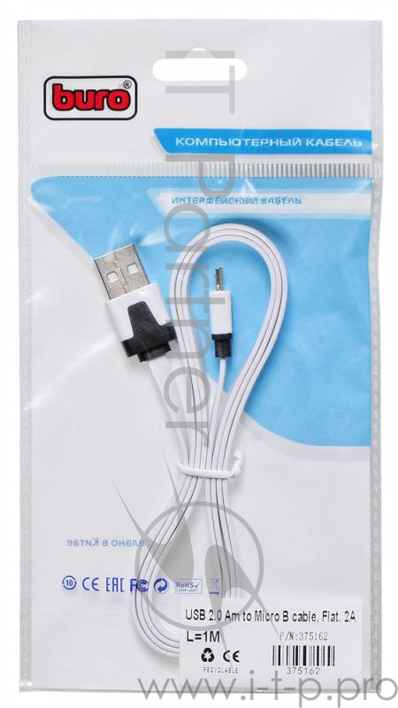 Кабель USB2.0 Buro USB A (m)/microUSB (m) 1м (BHP MICROUSB 1M FLAT)