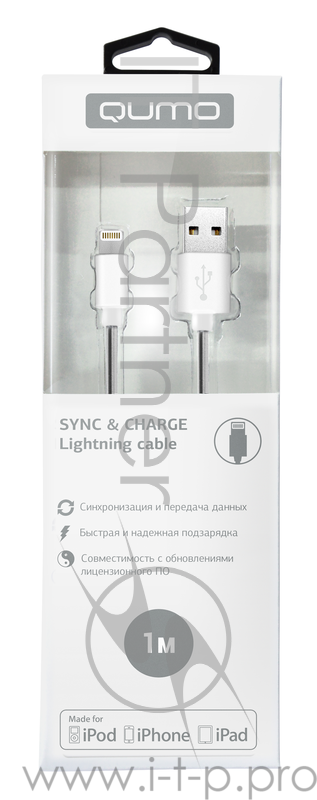 Кабель Cable Qumo MFI PVC+CoilL 1м wh (AP100) (21710)