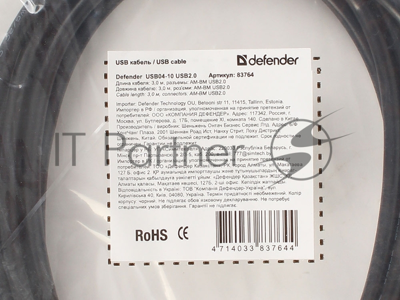 Кабель USB Defender USB04-10 USB2.0 AM-BM, 3.0м (83764)