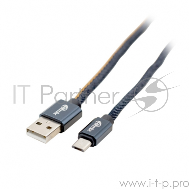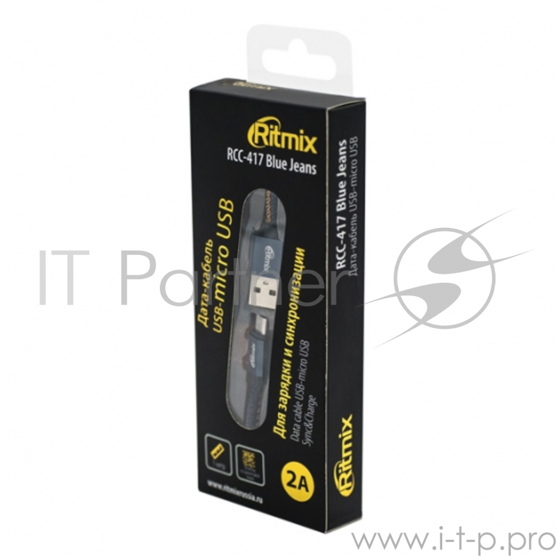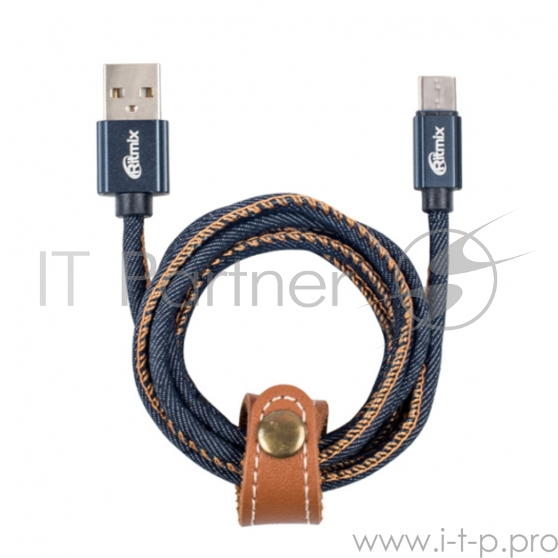 Кабель Micro USB-USB RITMIX RCC-417 Blue Jeans, 1м, 2А, оплетка из джинсовой ткани