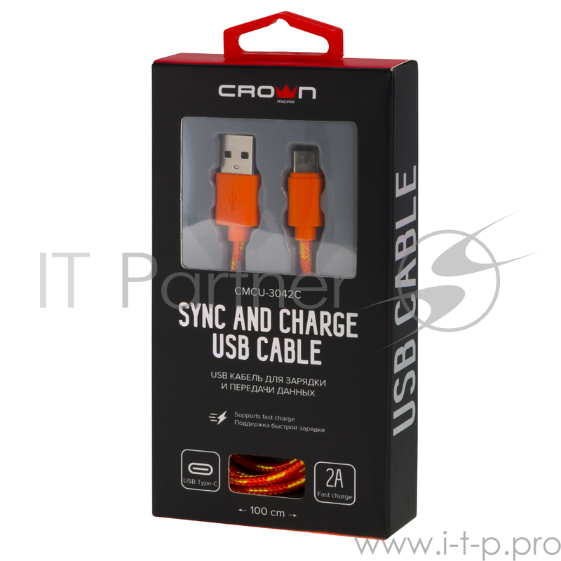 Кабель Crown USB - USB Type-C CMCU-3042C orange
