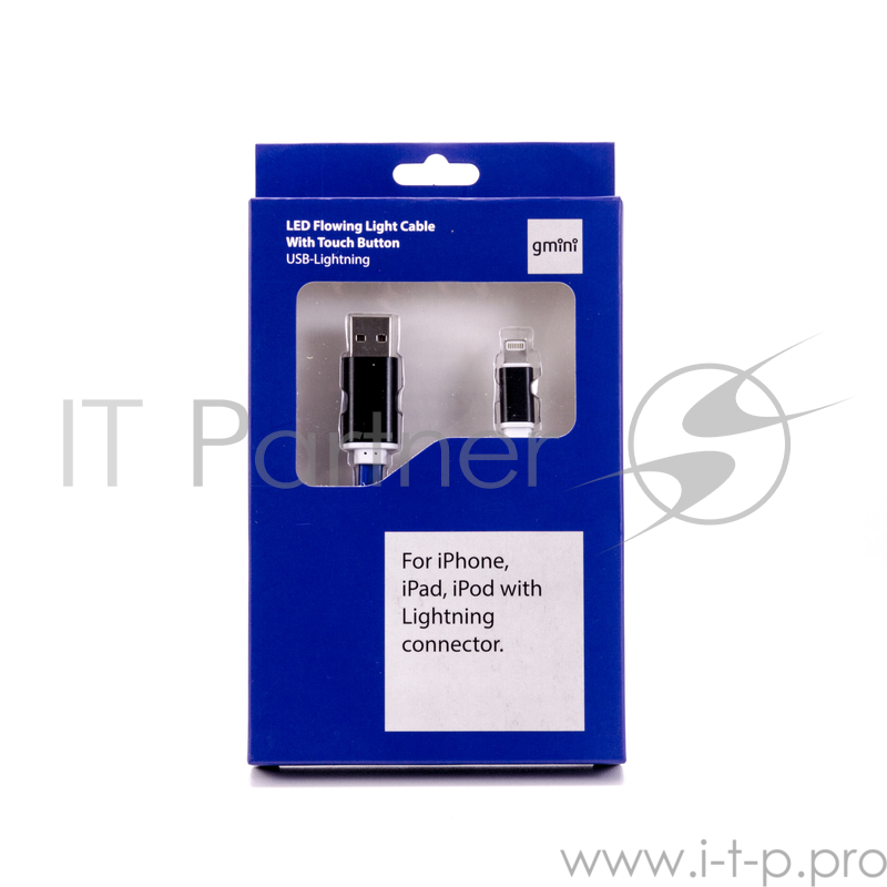 Кабель Gmini GM-MEL300FLATBL, USB-Lightning светящийся, 1м, синий