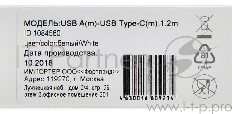 Кабель Digma USB A (m) USB Type-C (m) 1.2м белый