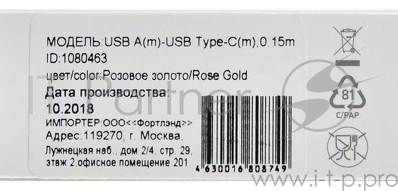 Кабель Digma USB A (m) USB Type-C (m) 0.15м золотистый