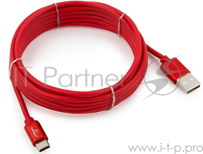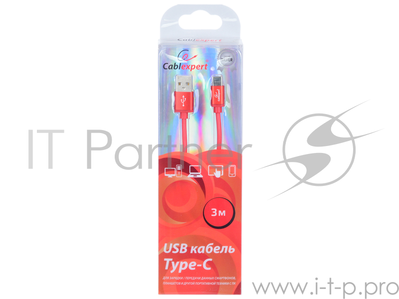 Кабель USB 2.0 Cablexpert, AM/Type-C, серия Silver, длина 3м, красный, блистер