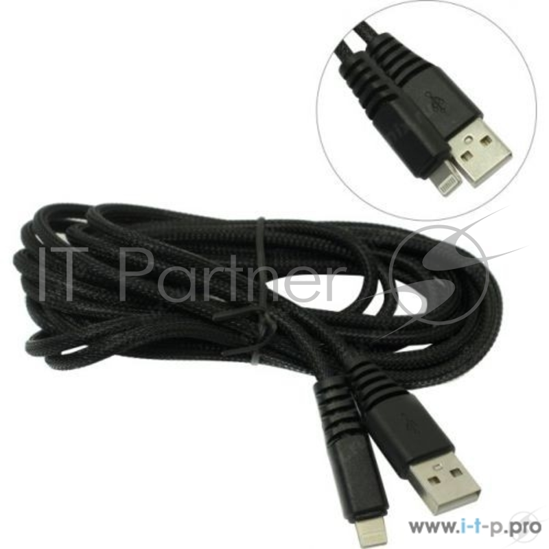Дата-кабель Smartbuy USB - 8-pin для Apple, "карбон", экстрапрочн., 3.0 м, до 2А, черный (iK-530n-2)
