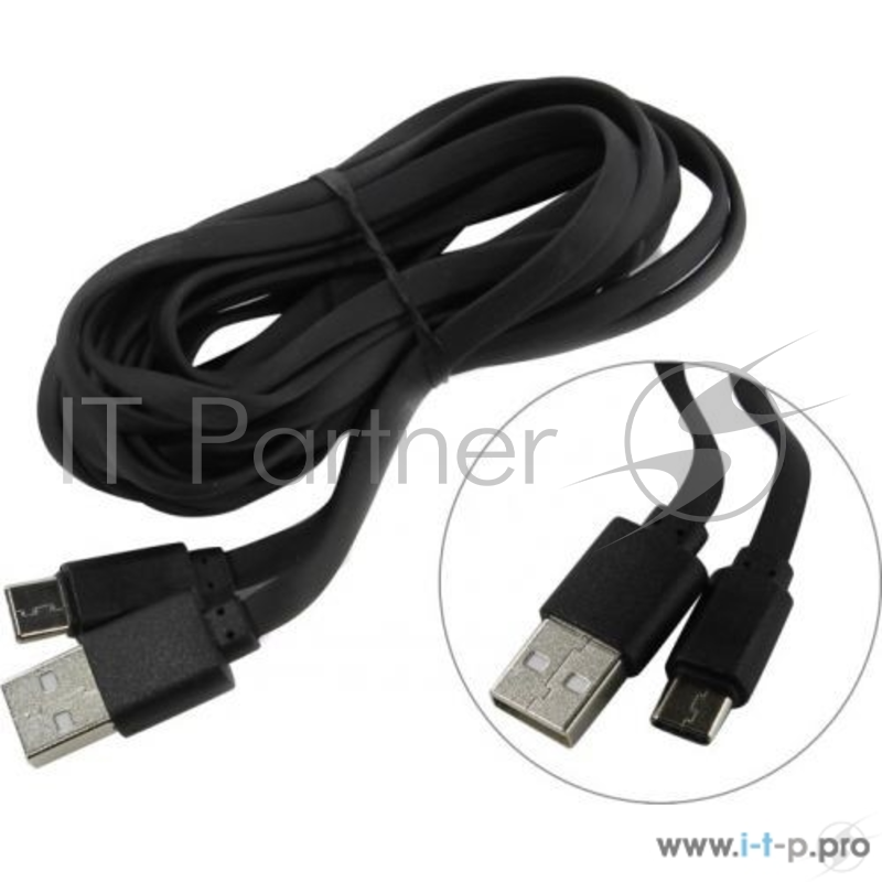 Дата-кабель Smartbuy USB - Type C, плоский, резиновый длина 3.0 м, до 2А, черный (iK-3130r-3)