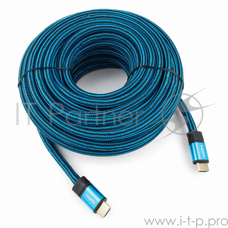 Кабель HDMI Cablexpert, серия Gold, 15 м, v1.4, M/M, синий, позол.разъемы, алюминиевый корпус, нейлоновая оплетка, коробка