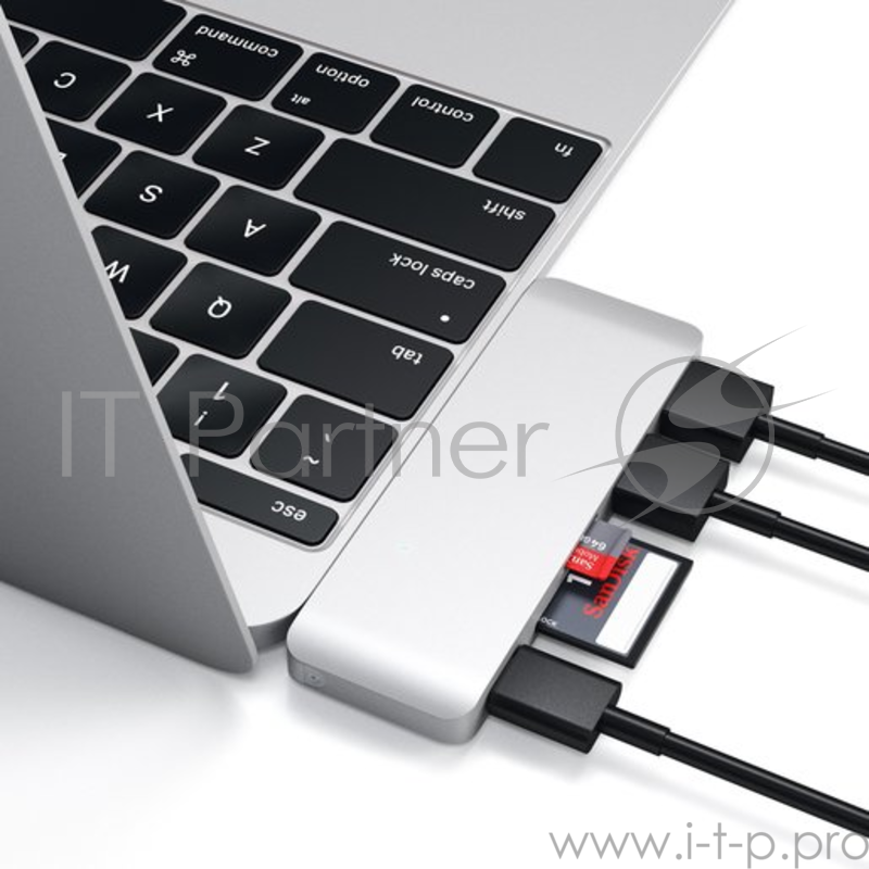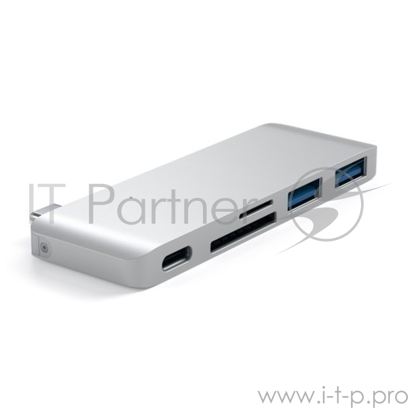 USB-хаб Satechi Type-C USB 3.0 Passthrough Hub для Macbook 12". Порты: 1x USB-C, 2 x USB 3.0, SD, microSD. Цвет серебряный.