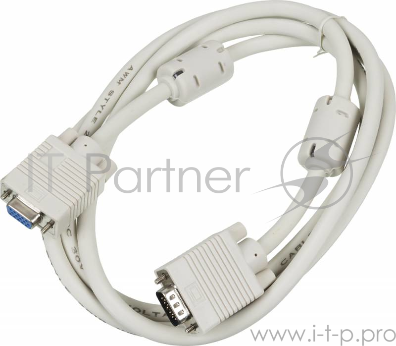 Кабель VGA 1.8м Ningbo удлинитель SVGA Pro 15M/15F 2 феррит.фильтра, белый, CAB015S-06F