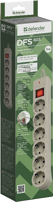 Сетевые фильтры Defender Фильтр DFS-603, 3м, 6 евророзеток 99407