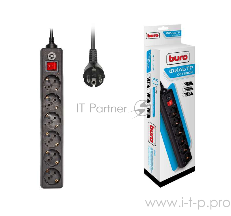 Сетевые фильтры BURO Сетевой фильтр, 6 розеток, 1.8 метра, (600SH-1.8-B), черный (коробка) {992264}