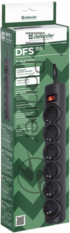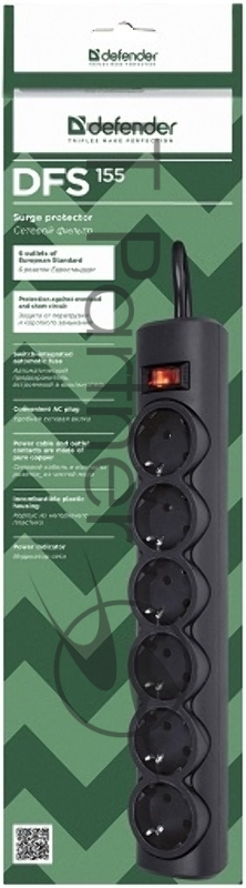 Сетевые фильтры Defender Фильтр DFS 155 5.0 m, 6 розеток, черный 99496