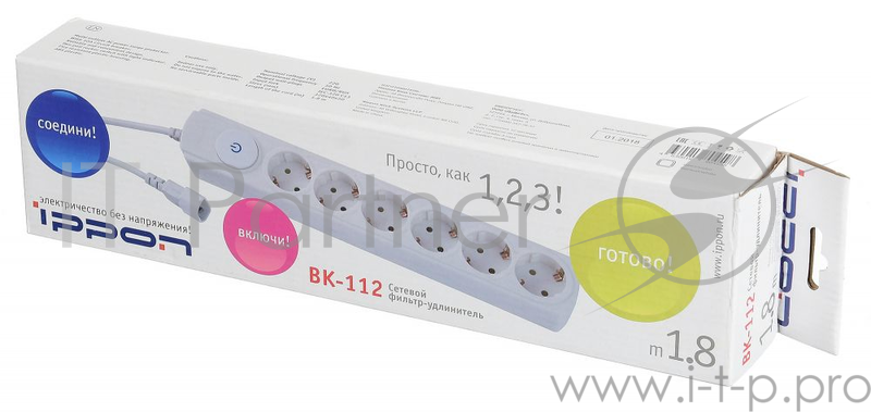 Сетевые фильтры IPPON Сетевой фильтр BK112 (6 розеток, 1.8 м) вилка UPS, белый (76879)