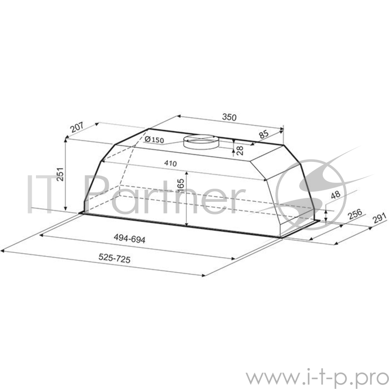 Вытяжка Krona Ameli 900 inox PB полновстраиваемая кухонная вытяжка встраивается в навесной шкафчик отвод / циркуляция Макс. производительность 550 куб. м/ч ширина для установки 90 см мощность 68 Вт мощность двигателя 65 Вт механическое управление т