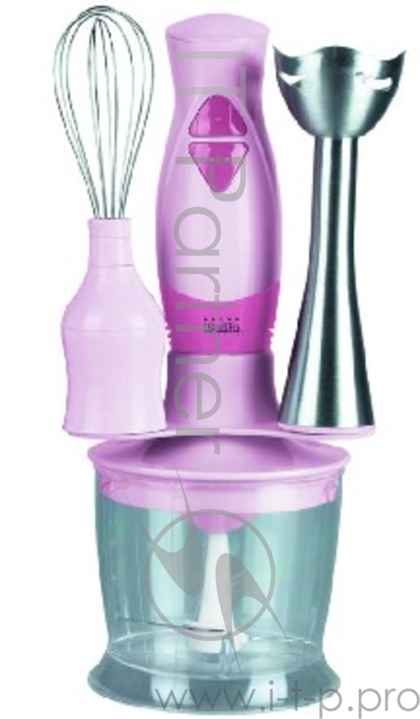 Блендер DELTA DL-7014D розовый(Мощность 200 Вт. 2 скоростных режима. 3 типа сменных насадок: - насадка для смешивания – насадка для взбивания- измельчитель. Объем чаши измельчителя 0,5 л. Цвет розовый.)