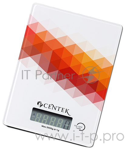 Весы кухонные Centek CT-2457 стеклянные, электронные, max 5кг, шаг 1г, шелкография, LCD