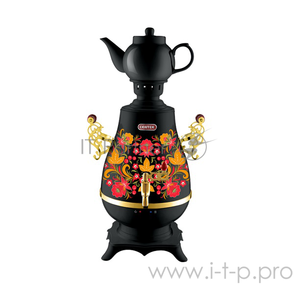 Самовар Centek СТ-0092 B (черн+рисунок+золото), 4.0л, 2300Вт, поддерж.t + LED индикатор, керам зав