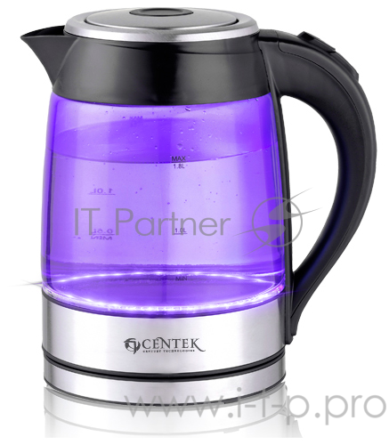 Чайник Centek CT-1074 (черн) стекло 1.8л, 2200Вт, внутренняя LED подсветка, защита от вкл без воды