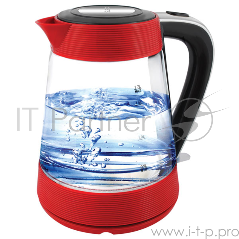 Чайник POLARIS PWK 1735CGL Красный POLARIS PWK 1735CGL Красный объем 1.7 л мощность 2000 Вт закрытая спираль установка на подставку в любом положении корпус из пластика и стекла подсветка корпуса