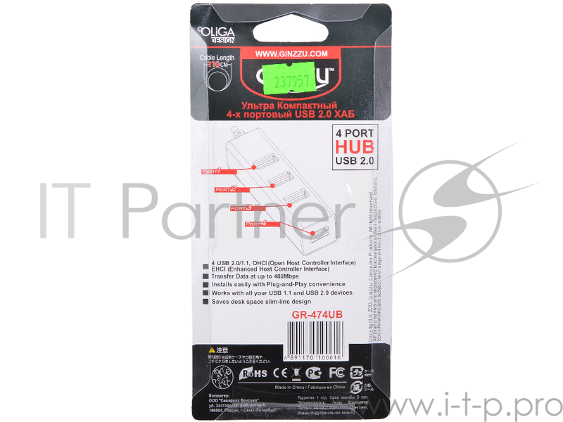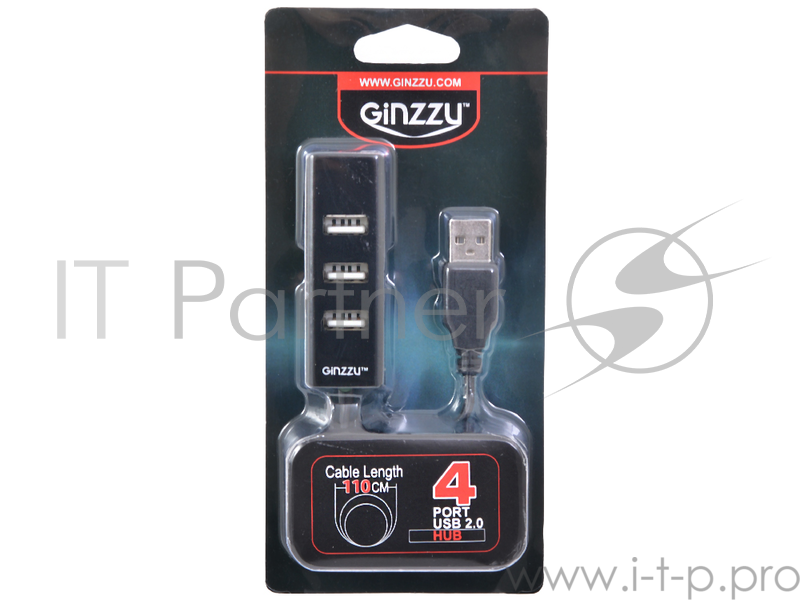Контроллер HUB GR-474UB Ginzzu USB 2.0 4 port, 1,1m cable