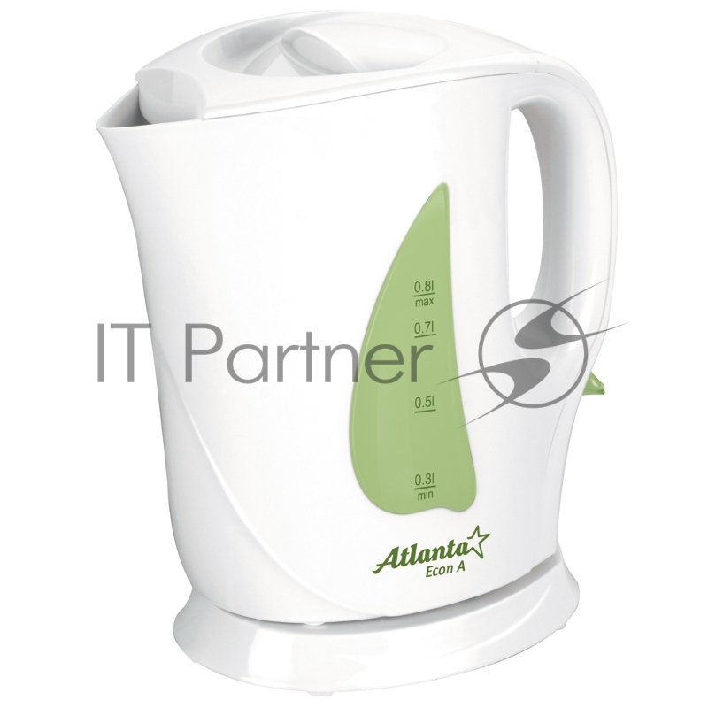 Чайник ATLANTA, ATH-717 зеленый, 0,8л, 900Вт, зеленый, фильтр от накипи, автоотключение, защита от перегрева, электрошнур в цокольной подставке.