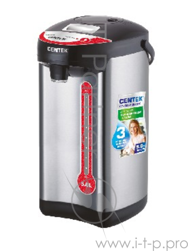 Термопот Centek CT-0082 Black (черн), 5л, 750Вт, 3 способа подачи воды, корпус из нержавеющей стали