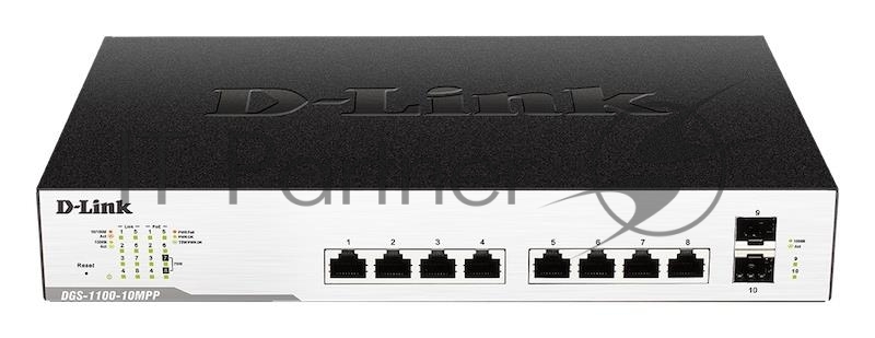 Сетевое оборудование D-Link DGS-1100-10MPP/B1A Настраиваемый коммутатор EasySmart с 8 портами 10/100/1000Base-T и 2 портами 1000Base-X SFP (порты 1 – 8 с поддержкой PoE 802.3af/802.3at (30 Вт)