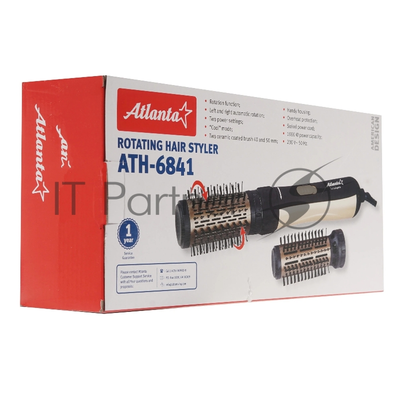 Фен-щетка с вращением ATLANTA, ATH-6841 золотой, 1000 Вт. Вращение, 50 и 40 мм насадки, два уровня мощности, Цвет-золотой
