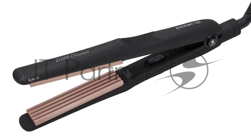Щипцы Polaris PHS 2011KZ, д/завивки 20x110мм, 45Вт, ГОФРЕ, КЕРАМ пластины, до 200С, дополнительный объем, защита от перегрева, цвет черный.
